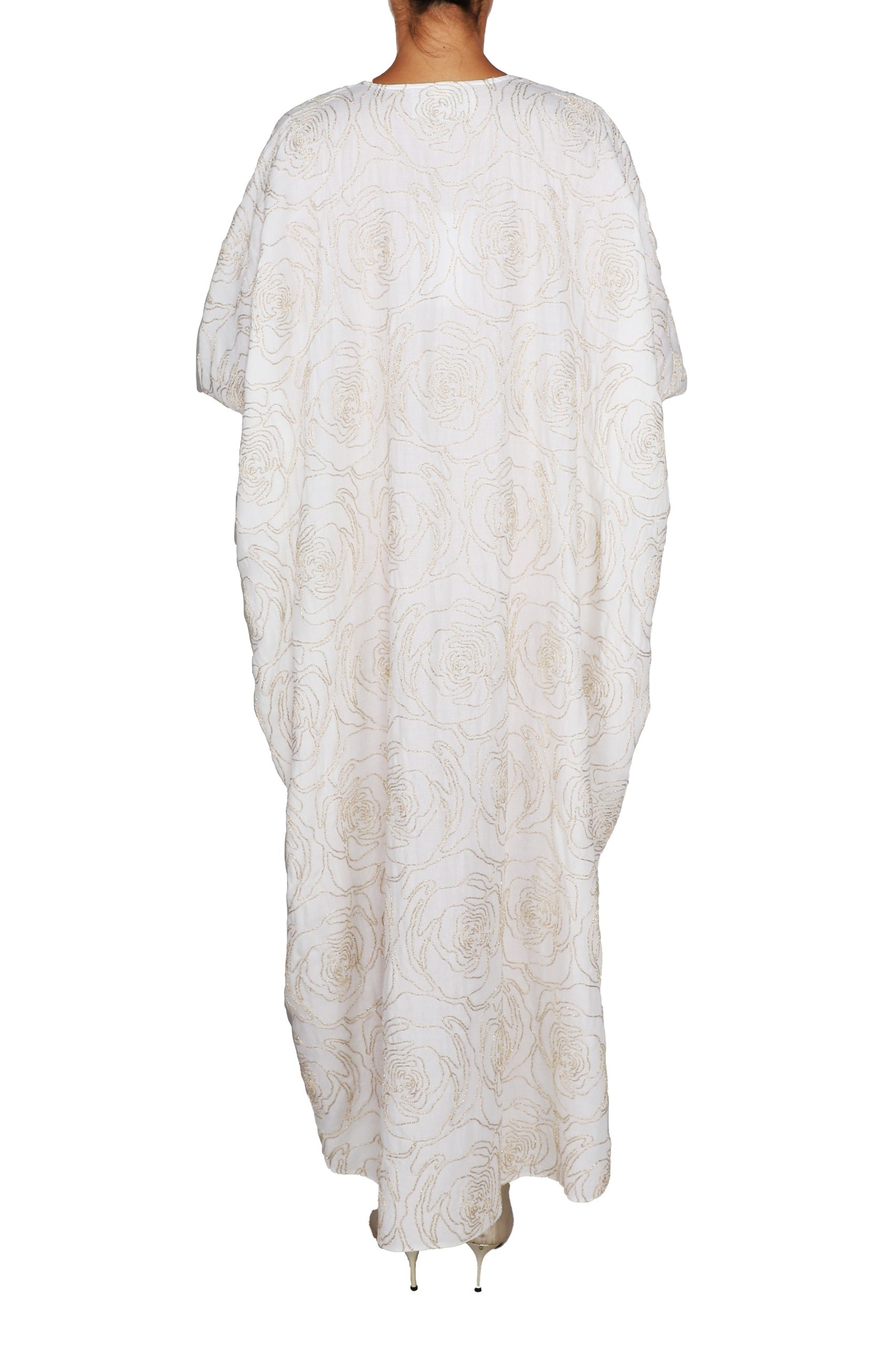 Crafted from a super soft wool with gold metallic embroidered flowers, this is a special version of our iconic boubou.