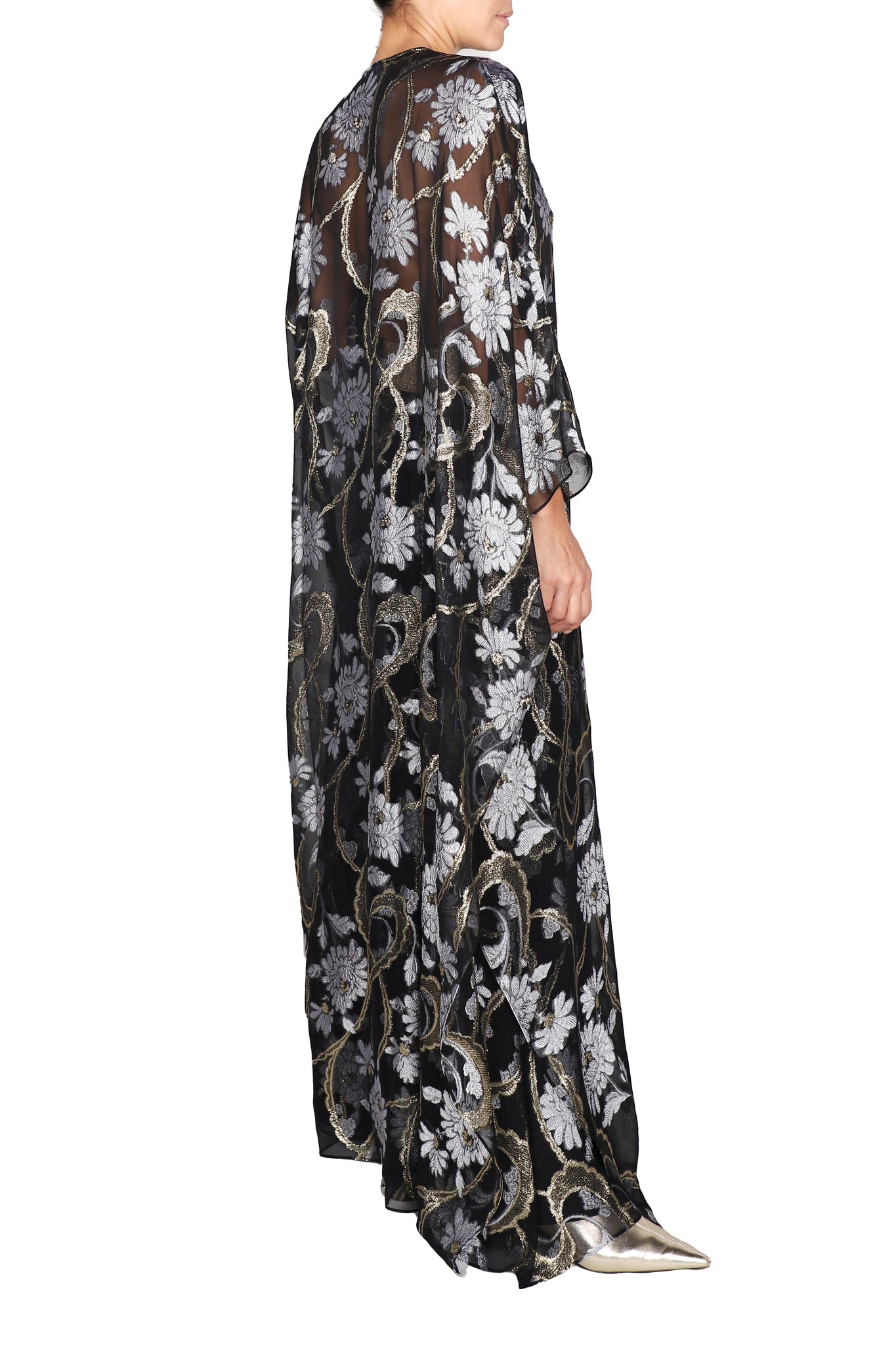 This bigger version of our iconic boubou, Crafted in a chiffon fabric with flowers and gold and white threads, is the epitome of simply chic style. Its wide shape fits all women.
