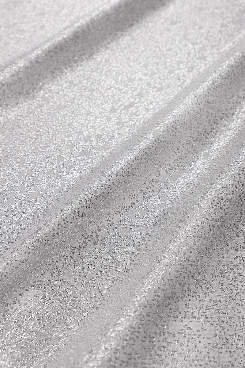 Designed from a luxurious sleek metallic chiffon and perfectly cut in an elegant wide shape with an alluring V-neckline and half sleeves.
