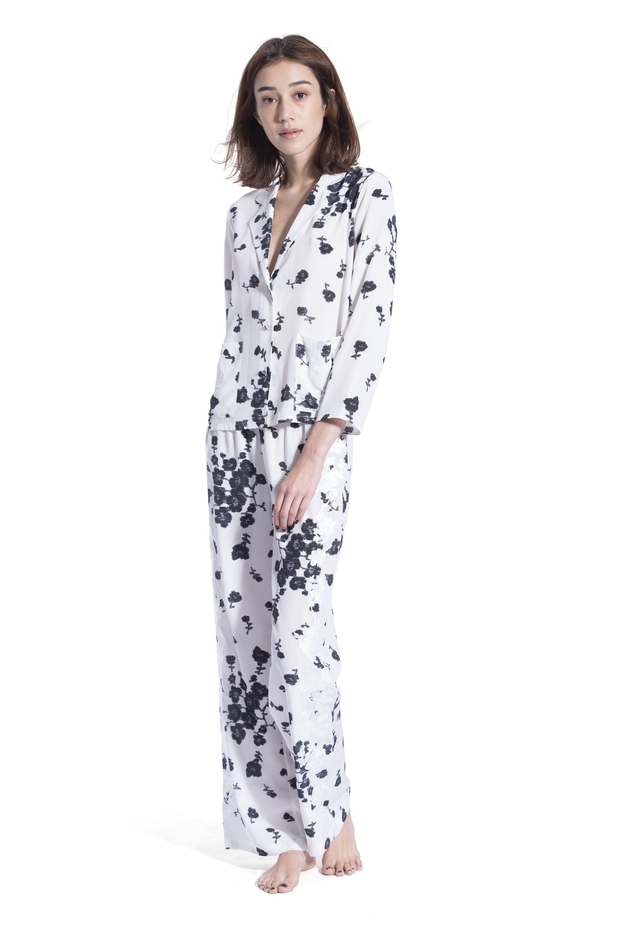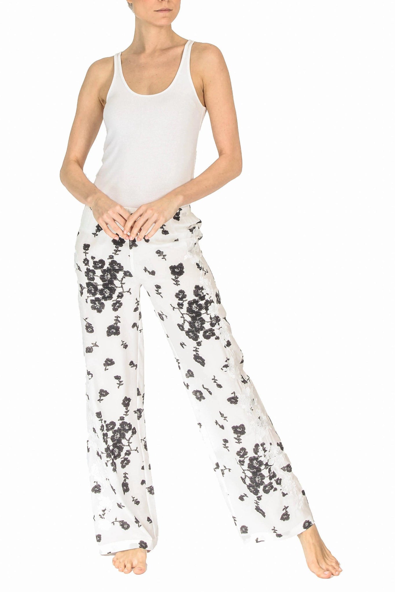 Silk Flare Pants Marie France Van Damme 0 White Black Small Flower