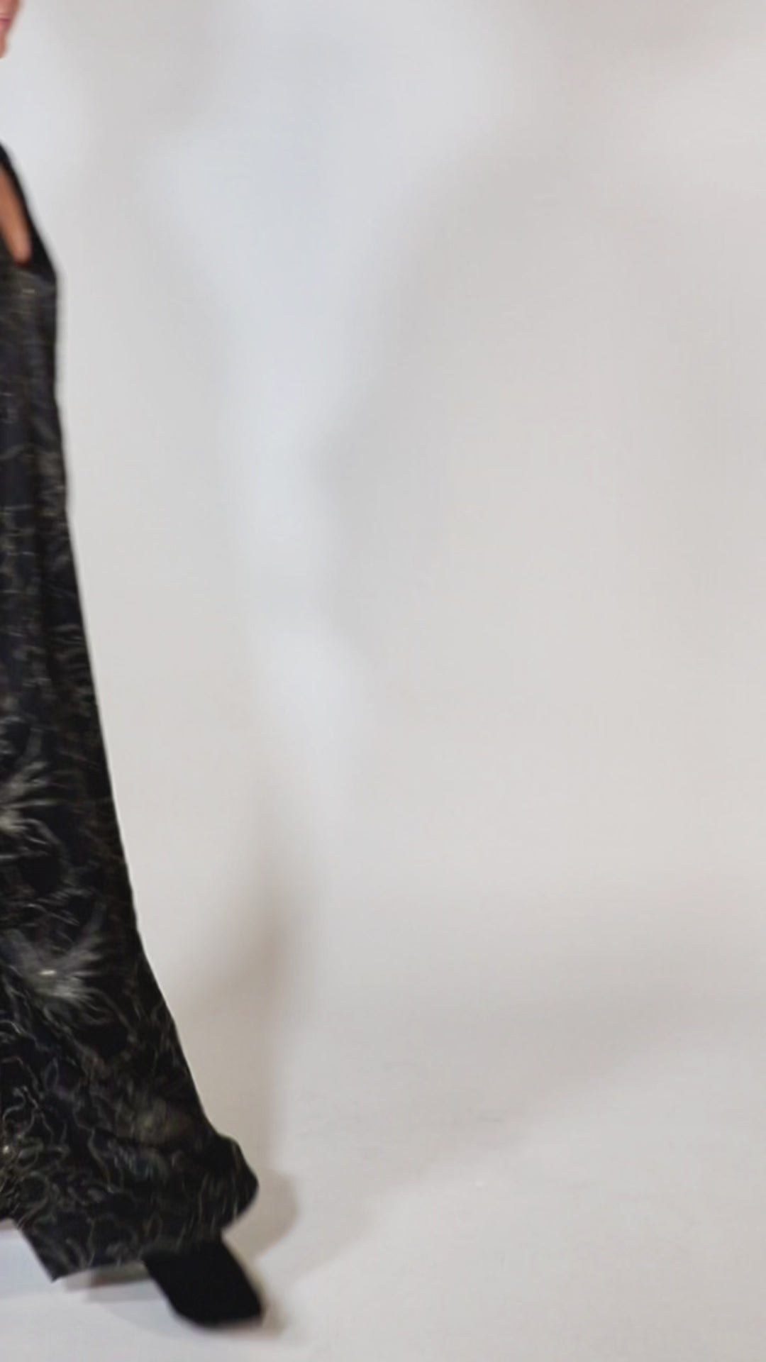 Crafted from a satin crepe with gold metallic embroideries, this version of our iconic boubou caftan, is the epitome of simply chic style. Its wide shape fits all women, its simplicity allows all the accessories.
