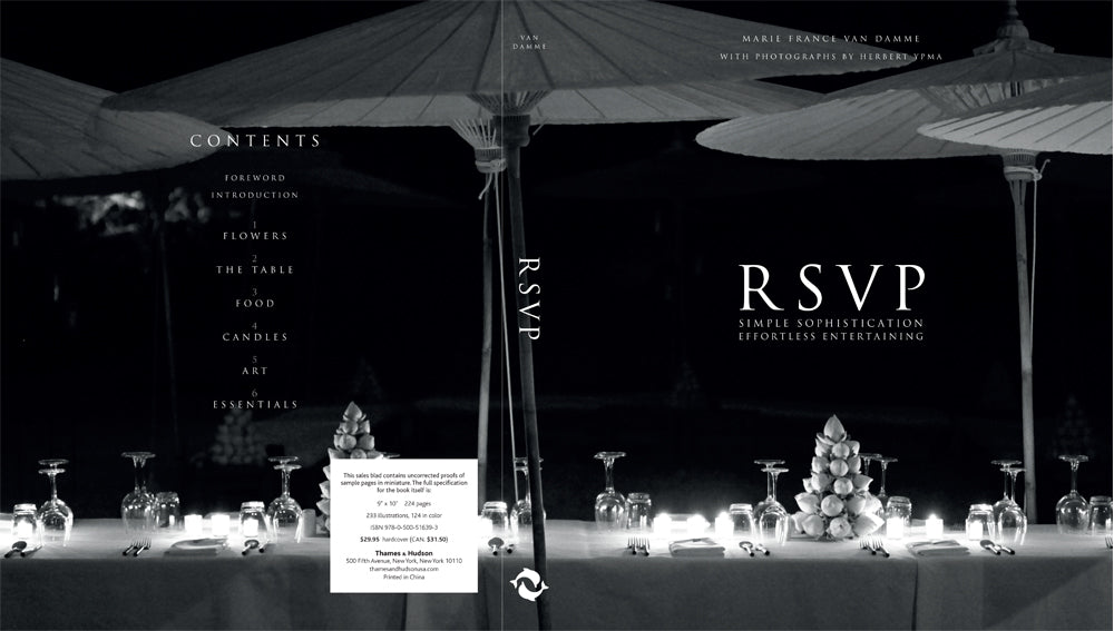 “RSVP: Simple Sophistication. Effortless Entertaining,” published by Thames & Hudson in October 2012 is Marie France Van Damme's first book with photographs by Herbert Ypma of the Hip Hotel series.