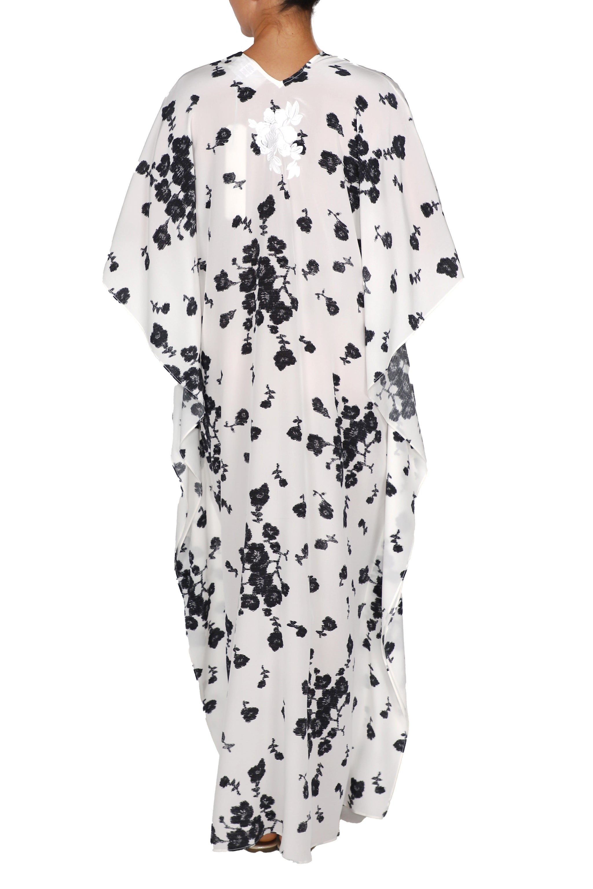 Crafted from a super soft washed silk Crepe de Chine, this is a luxurious embroidered version of our iconic boubou. Its wide shape fits all women, the intricate embroidery turns it into a cool luxury piece.